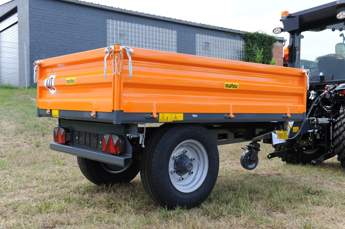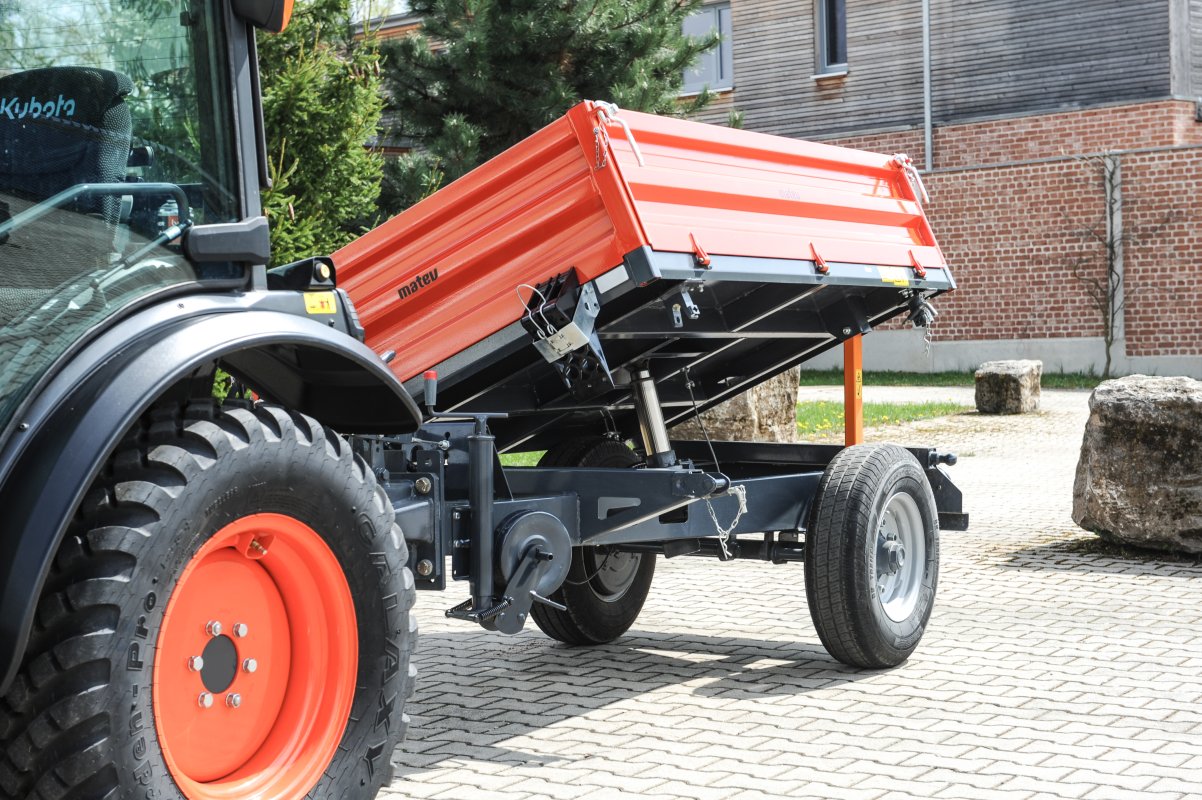 Dank der Dreiseitenkipp-Funktion bietet der matev Trailer maximale Flexibilität und kann an verschiedene Einsatzbedingungen angepasst werden. Die hochwertige Verarbeitung und langlebige Bauweise des Traktoranhänger machen ihn zu einem zuverlässigen Begleiter für anspruchsvolle Aufgaben und schwere Lasten – perfekt für alle, die Effizienz und Vielseitigkeit bei einem Traktoranhänger suchen.