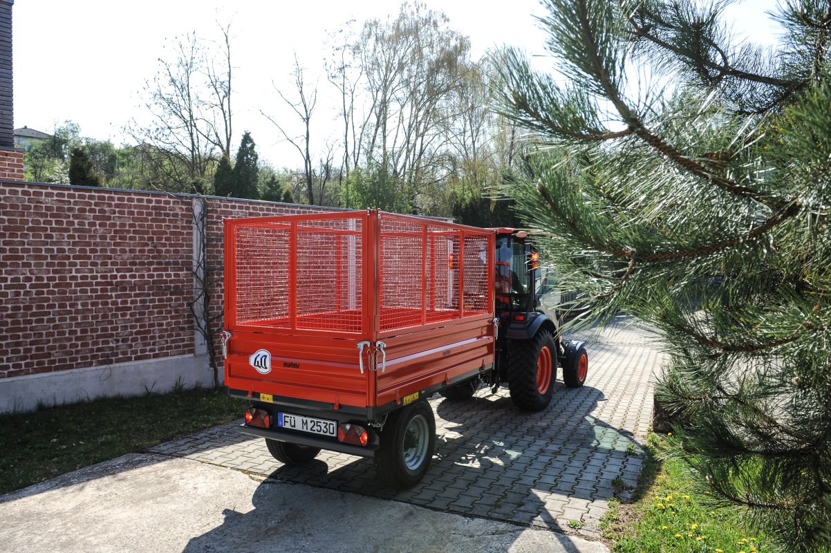 Der Traktoranhänger von Matev überzeugt durch seine Vielseitigkeit und eignet sich ideal für schmale Einsatzgebiete wie Friedhöfe, Parkanlagen und Gehwege. Aber auch im Bauwesen und bei Erdbewegung zeigt der Anhänge seine beste Performance. Dank seiner kompakten Bauweise und der Straßenzulassung kann er flexibel auch auf öffentlichen Straßen eingesetzt werden. Die robuste Konstruktion sorgt zudem für eine lange Lebensdauer – perfekt für professionelle Anwender in der Flächenpflege.