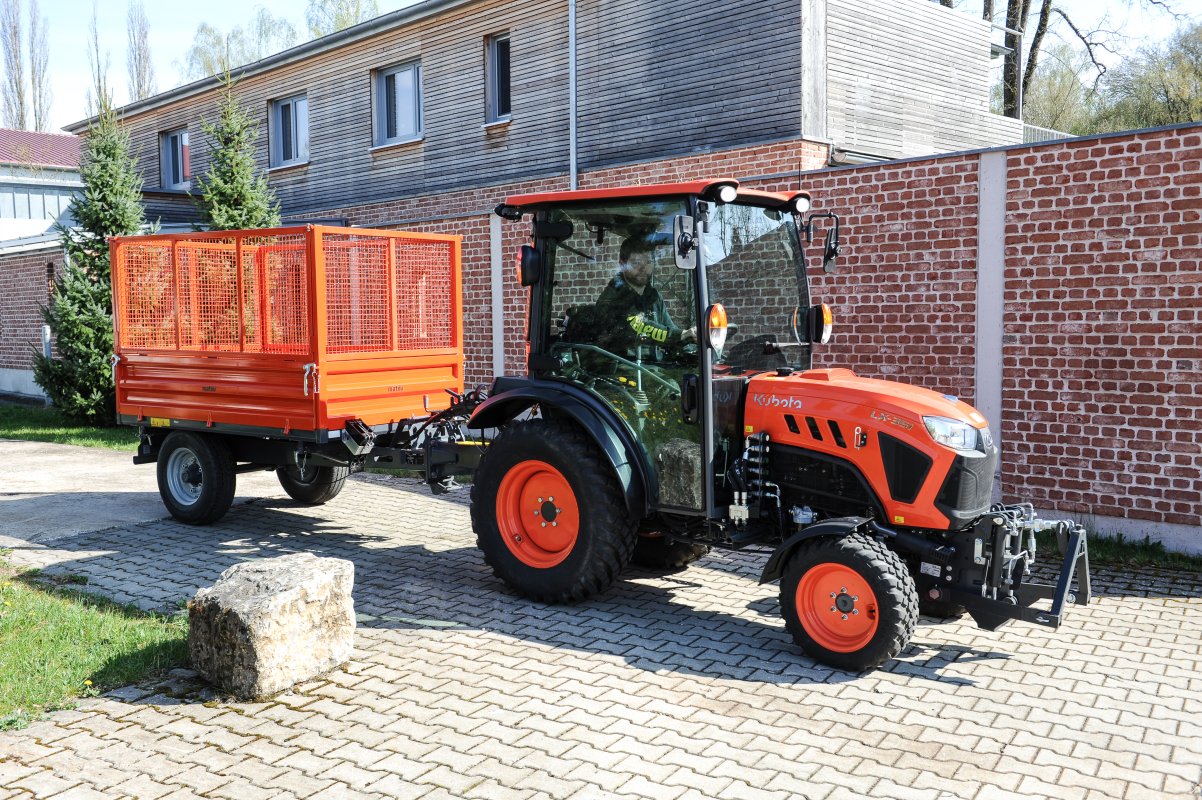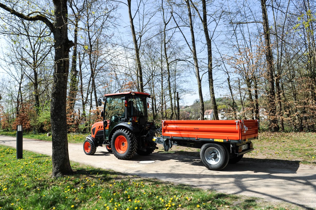 Durch die kompakte Bauweise des Traktoranhängers eignet er sich hervorragend für den Einsatz in beengten Bereichen wie Gehwegen, Friedhöfen, Parkanlagen etc. Um eine lange Lebensdauer zu gewährleisten, wird zudem eine verstärkte 4,8-Tonnen-Achse eingebaut.