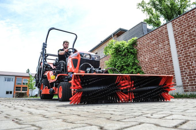 Mit Universalkehrwalze für effizientes Schmutz- und Schneekehren an Kleintraktoren