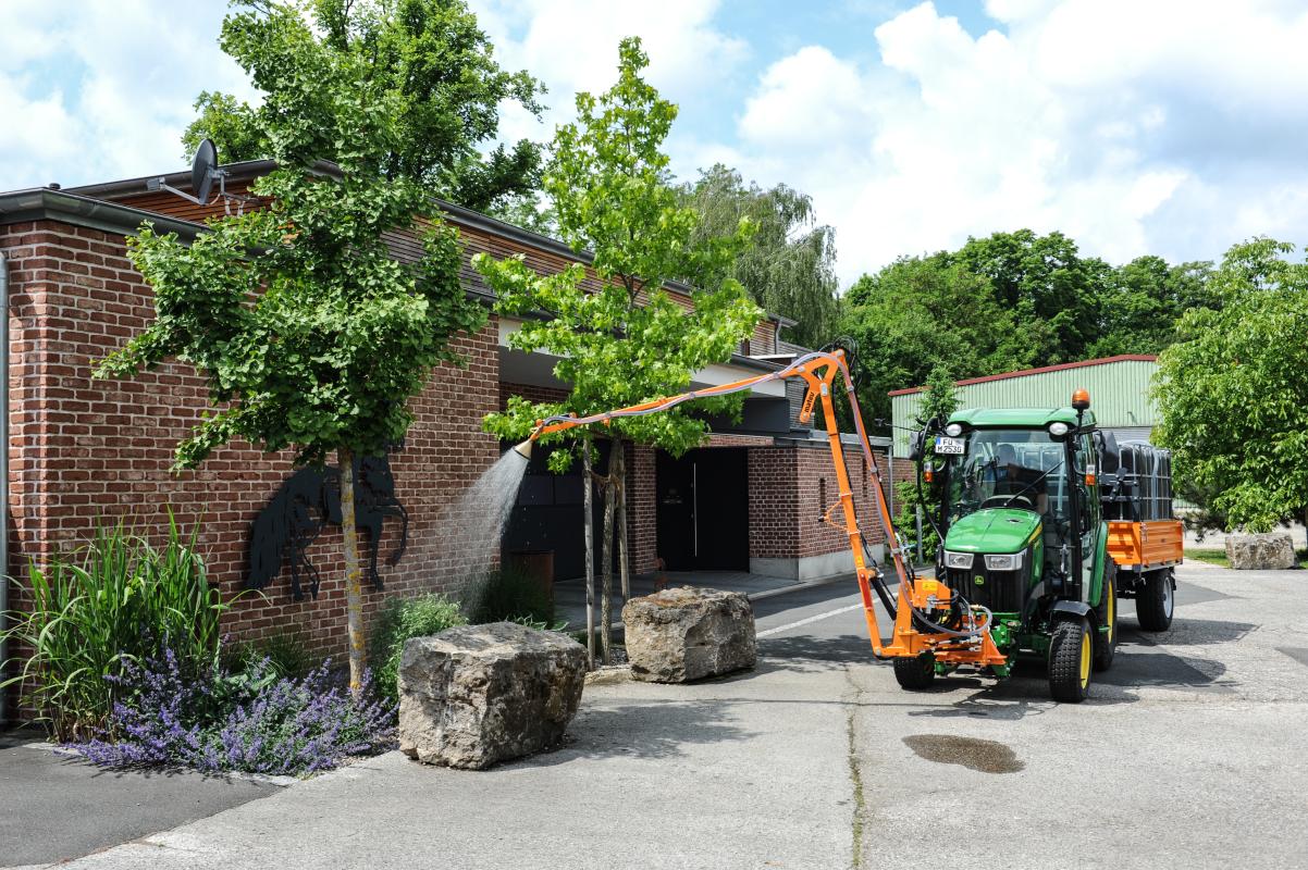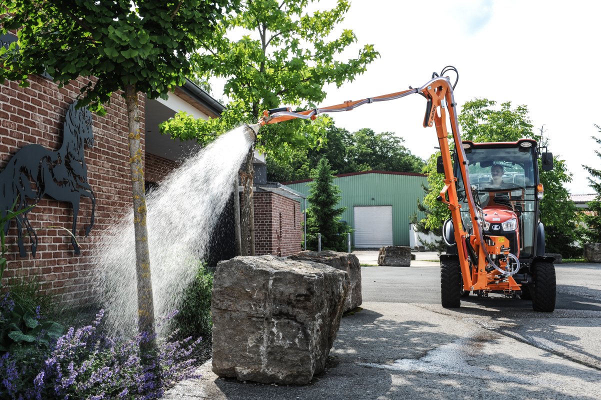 ermöglicht präzises und komfortables Bewässern mit hydraulischer Steuerung – ideal für schwer zugängliche Grünflächen und effiziente Flächenpflege.