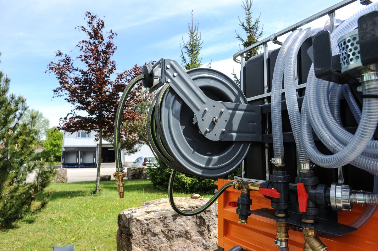 Das System mit IBC-Tanks ist schnell einsatzbereit, unabhängig von fester Wasserversorgung und ideal für wechselnde Einsatzorte.