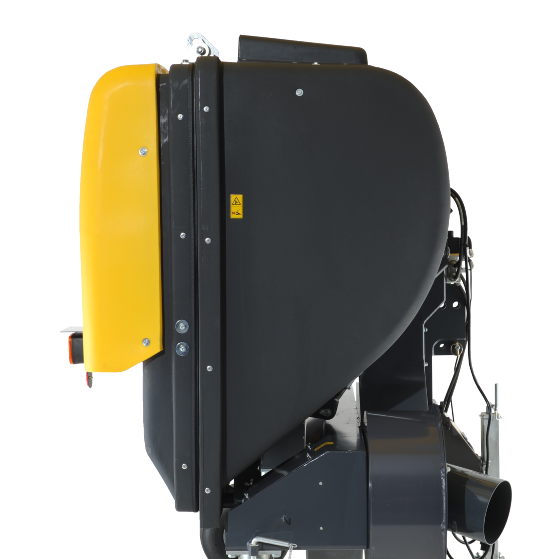 Das Grasaufnahmegerät zeichnet sich durch seinen robusten und zugleich formschönen Behälter aus strapazierfähigen PE-Kunststoffschalen aus, die nicht nur durch ihre Langlebigkeit überzeugen, sondern auch in verschiedenen traktorspezifischen Farben erhältlich sind, um eine harmonische optische Integration zu gewährleisten. Dank der innovativen und optimierten Behälterform werden Rasenschnitt, Laub oder andere aufgenommene Materialien stark verdichtet, was eine maximale Ausnutzung des gesamten Behältervolumens ermöglicht. Dies führt zu einer deutlichen Reduzierung der Entleerungsintervalle, erhöht die Effizienz im Einsatz und minimiert Arbeitsunterbrechungen.